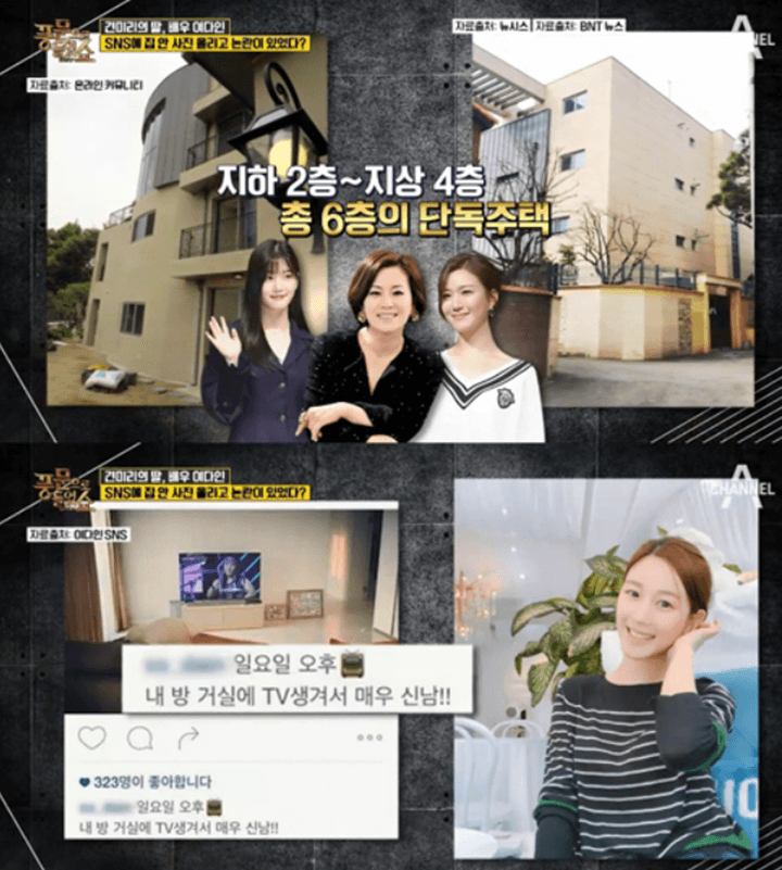 특히 견미리 둘째 딸인 이다인은 자신의 SNS에 "내 방 거실에 TV가 생겼다"고 글을 올려, 으리으리한 집이라는 뉘앙스를 풍긴 바 있죠. 통상 집 거실은 하나가 일반 적이지만 견미리 가족의 집은 방마다 거실이 따로 있는 것임을 알 수 있습니다.