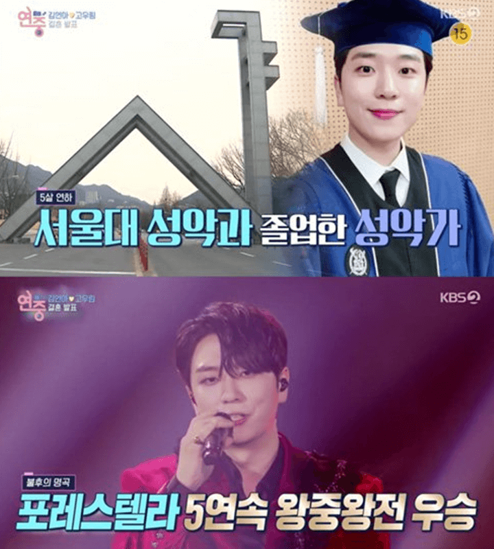 예비 김연아 남편 고우림은 서울대 성악과를 졸업한 성악가로 남성 크로스오버 그룹 포레스텔라의 멤버입니다. 고우림은 남성 4중창 단원을 뽑는 오디션 프로그램 팬텀싱어 시즌2에 팀 멤버로 출연해 우승했으며, 현재 포레스텔라 멤버로 활동중입니다.