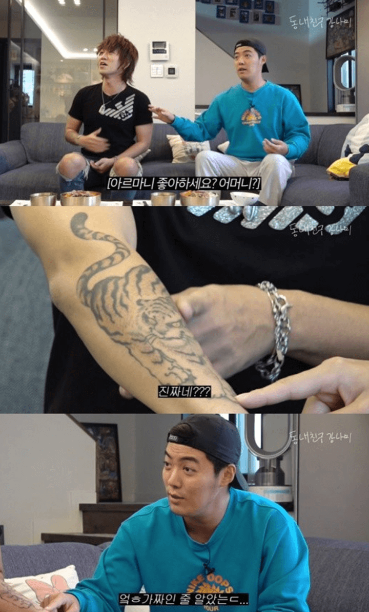 강남이 운영중인 유튜브 채널 '동네친구 강나미'에는 '엄마 마음마저 훔치러 온 일본인 친구 다나카'라는 제목의 영상이 업로드 됐는데요. 이 영상에서 강남은 다나카의 팔 호랑이 문신을 보고 놀라는 모습을 보였습니다. 강남은 "가짜인 줄 알았다"고 하자 다나카는 "진짜다. 나도 진짜고"라고 답했는데요.